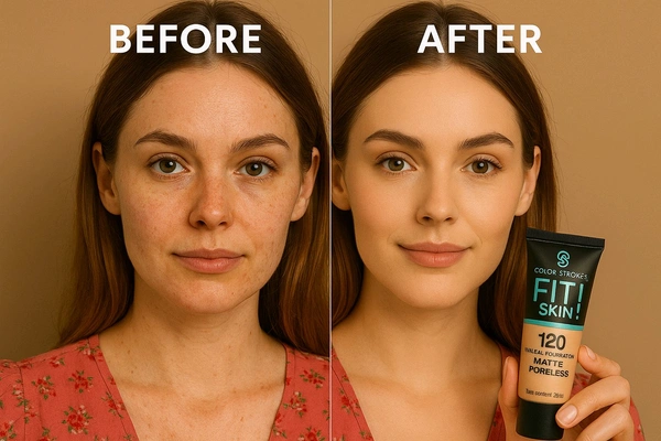 Color Strokes FIIT SKIN! Foundation – Matte + Poreless finish for a flawless, all-day glow. Lightweight, full coverage & perfect for every skin tone.